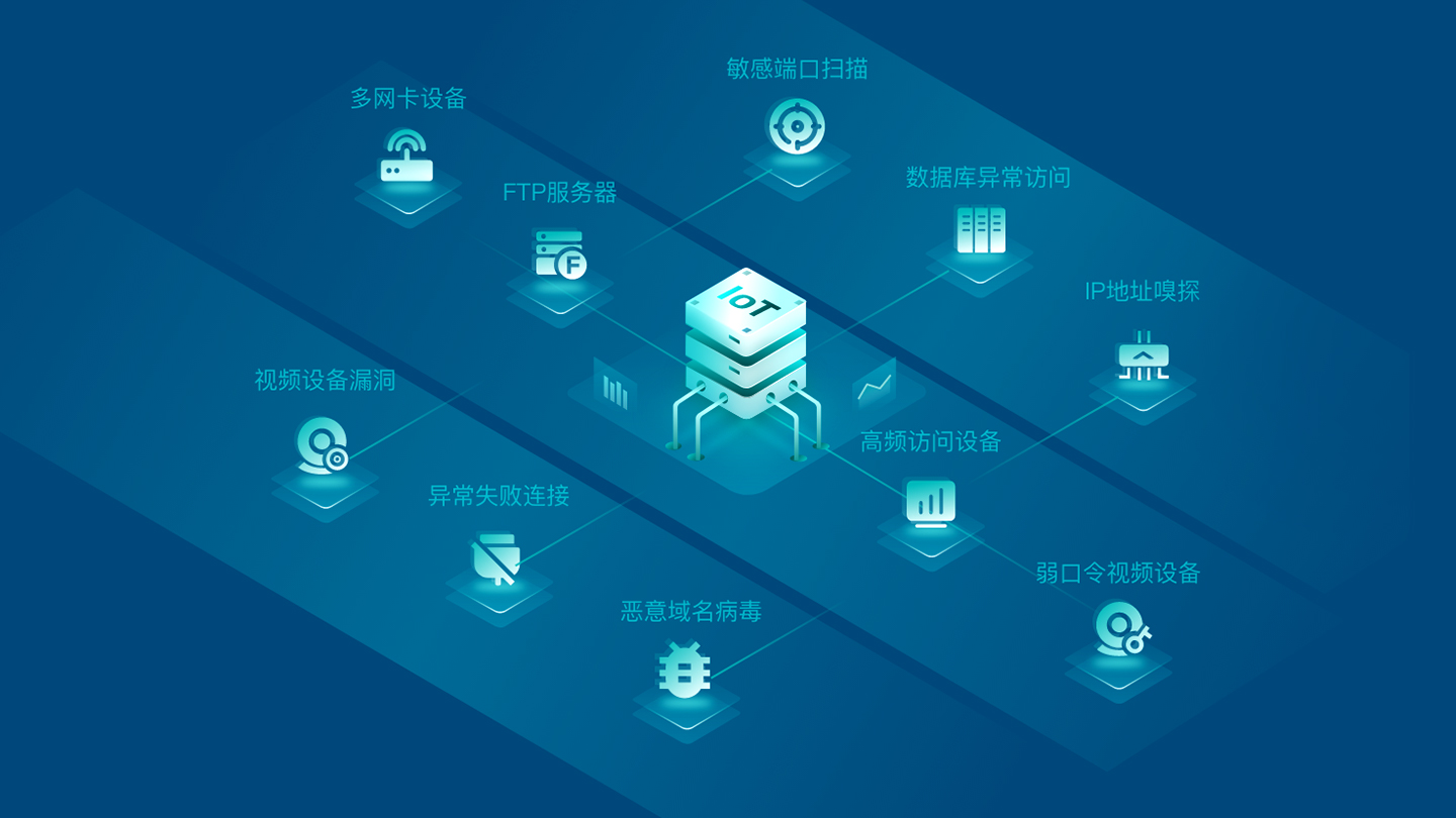 從用戶(hù)物聯(lián)網(wǎng)終端的資產(chǎn)出發(fā),關(guān)注物聯(lián)網(wǎng)終端資產(chǎn)狀態(tài)、違規(guī)行為、弱口令、系統(tǒng)漏洞等威脅信息,并且及時(shí)發(fā)現(xiàn)突破、繞過(guò)現(xiàn)有安全防御機(jī)制的風(fēng)險(xiǎn)行為,實(shí)時(shí)主動(dòng)監(jiān)測(cè)、預(yù)警威脅信息與風(fēng)險(xiǎn)行為