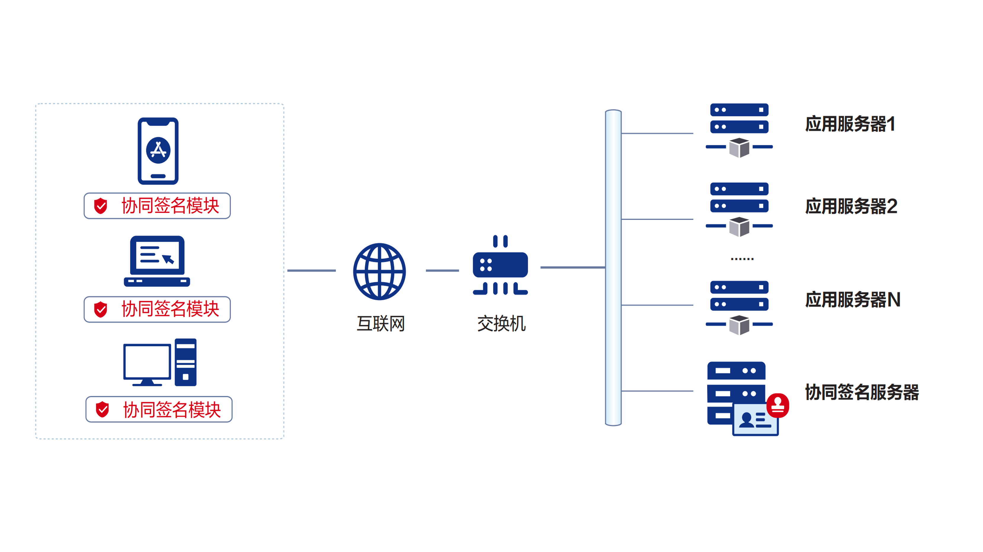 協(xié)同簽名模塊可在各類終端、應(yīng)用系統(tǒng)中集成部署,支持iOS、Android終端;支持Windows、Linux操作系統(tǒng)多 種內(nèi)核版本。