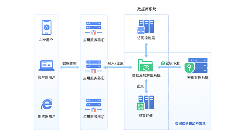 數據庫透明加密系統(tǒng),基于國產密碼算法,為用戶提供安全合規(guī)、易部署的透明存儲加密服務。產品支持在不更改原有數據庫系統(tǒng)架構的情況下實現數據的透明加密,有效防止數據庫存儲環(huán)節(jié)可能出現的泄露風險。