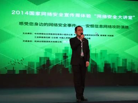 這是中國第一次舉辦全國范圍的網(wǎng)絡(luò)安全主題宣傳活動。安恒信息技術(shù)專家在啟動日首場“網(wǎng)絡(luò)安全大講堂”上,為公眾帶來現(xiàn)場網(wǎng)絡(luò)攻防演練并做主題演講。講解在當今互聯(lián)網(wǎng)生存環(huán)境下,企業(yè)和個人如何應(yīng)對各種手段的攻擊。