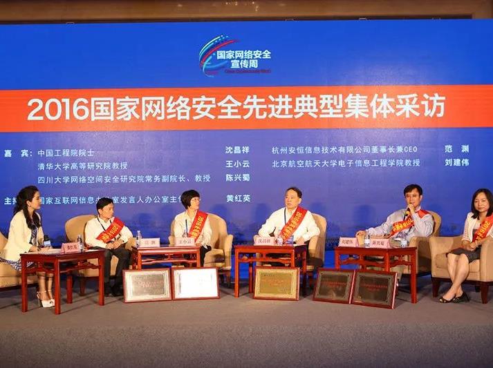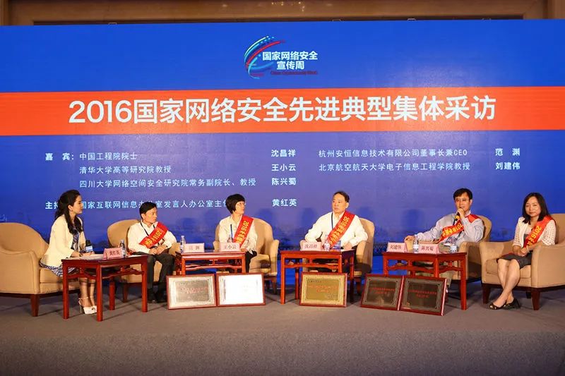 在中央網(wǎng)信辦和教育部指導(dǎo)下,中國互聯(lián)網(wǎng)發(fā)展基金會網(wǎng)絡(luò)安全專項基金組織了網(wǎng)絡(luò)安全優(yōu)秀人才、優(yōu)秀教師等評選活動。經(jīng)過中央部門和院士推薦、專家評審、公示,評選出網(wǎng)絡(luò)安全杰出人才1名、優(yōu)秀人才10名、優(yōu)秀教師8名。據(jù)《國家網(wǎng)絡(luò)安全宣傳周活動方案》,開幕式上表彰了網(wǎng)絡(luò)安全先進典型。杭州安恒信息技術(shù)有限公司董事長范淵榮獲“2016年網(wǎng)絡(luò)安全優(yōu)秀人才獎”,代表“網(wǎng)絡(luò)安全優(yōu)秀人才”接受媒體集體采訪。