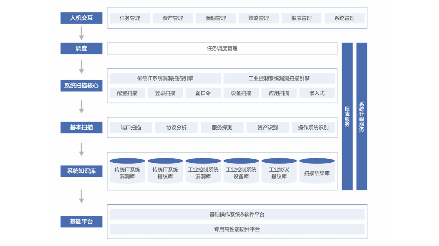 系統(tǒng)具備漸進(jìn)式、多線程的掃描技術(shù),能夠快速發(fā)現(xiàn)目標(biāo)網(wǎng)絡(luò)中的存活資產(chǎn),自動調(diào)整掃描識別策略;采用多線程技術(shù)進(jìn)行多并發(fā)掃描,從而保證掃描任務(wù)的迅速完成。