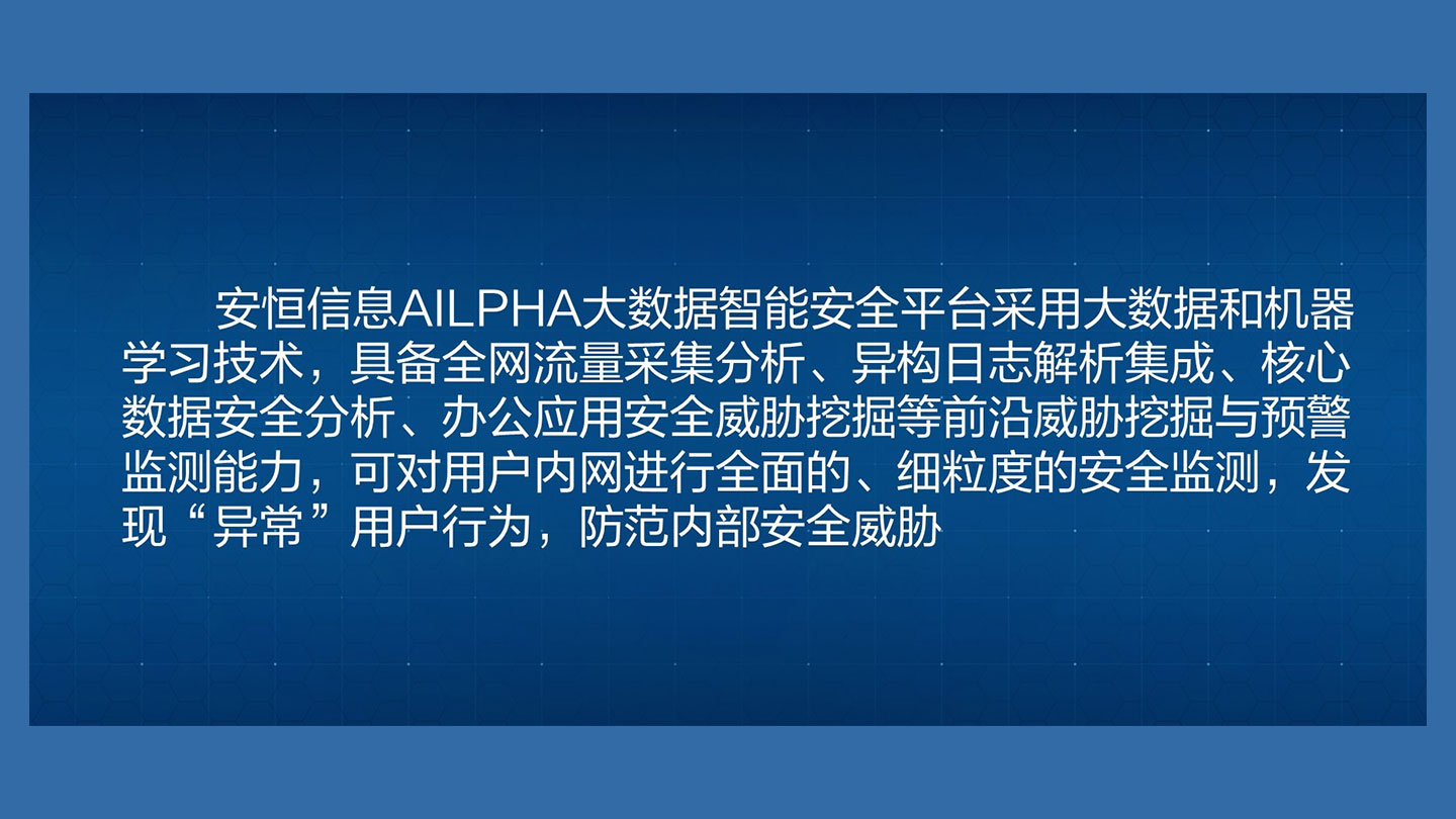 企業(yè)遠程辦公期間,內(nèi)部數(shù)據(jù)通過各類途徑對外暴露,造成較大安全隱患,平臺利用AI技術(shù),以內(nèi)部數(shù)據(jù)被訪問行為指標進行機器學(xué)習(xí)建模,構(gòu)建動態(tài)置信區(qū)間,識別“內(nèi)鬼”行為