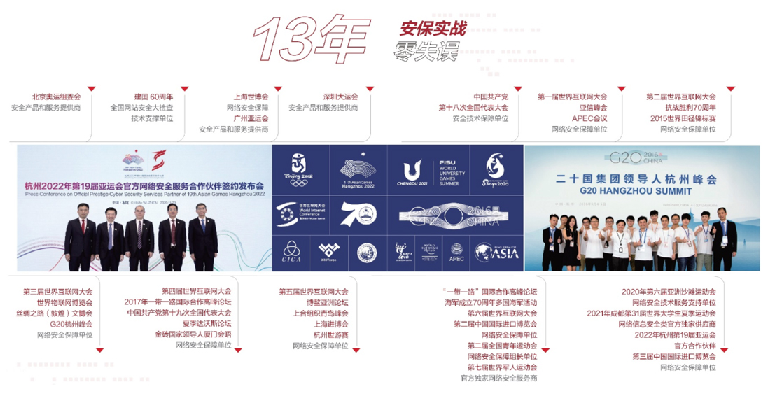 近百場國家級重大網(wǎng)絡信息安全保障500+安全保障優(yōu)秀工作者2000+保障單位感謝信