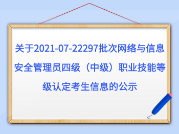 關(guān)于2021-07-22297批次網(wǎng)絡(luò)與信息安全管理員四級(中級)職業(yè)技能等級認定考生信息的公示