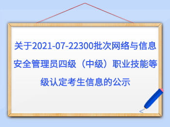 關(guān)于2021-07-22300批次網(wǎng)絡(luò)與信息安全管理員四級(中級)職業(yè)技能等級認定考生信息的公示