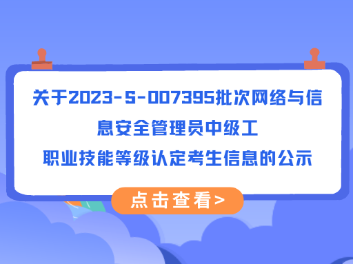 關(guān)于2023-S-007395批次網(wǎng)絡(luò)與信息安全管理員中級工職業(yè)技能等級認定考生信息的公示