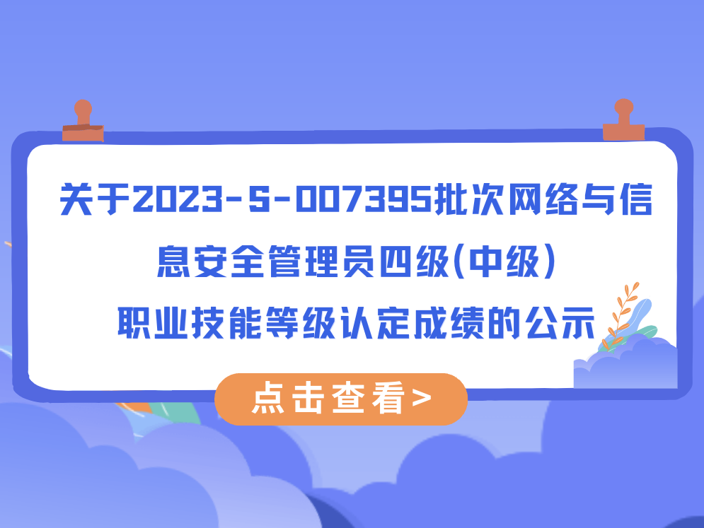 關(guān)于2023-S-007395批次網(wǎng)絡(luò)與信息安全管理員四級(中級)職業(yè)技能等級認定成績的公示
