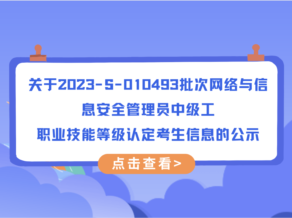 關(guān)于2023-S-010493批次網(wǎng)絡(luò)與信息安全管理員中級工 職業(yè)技能等級認定考生信息的公示