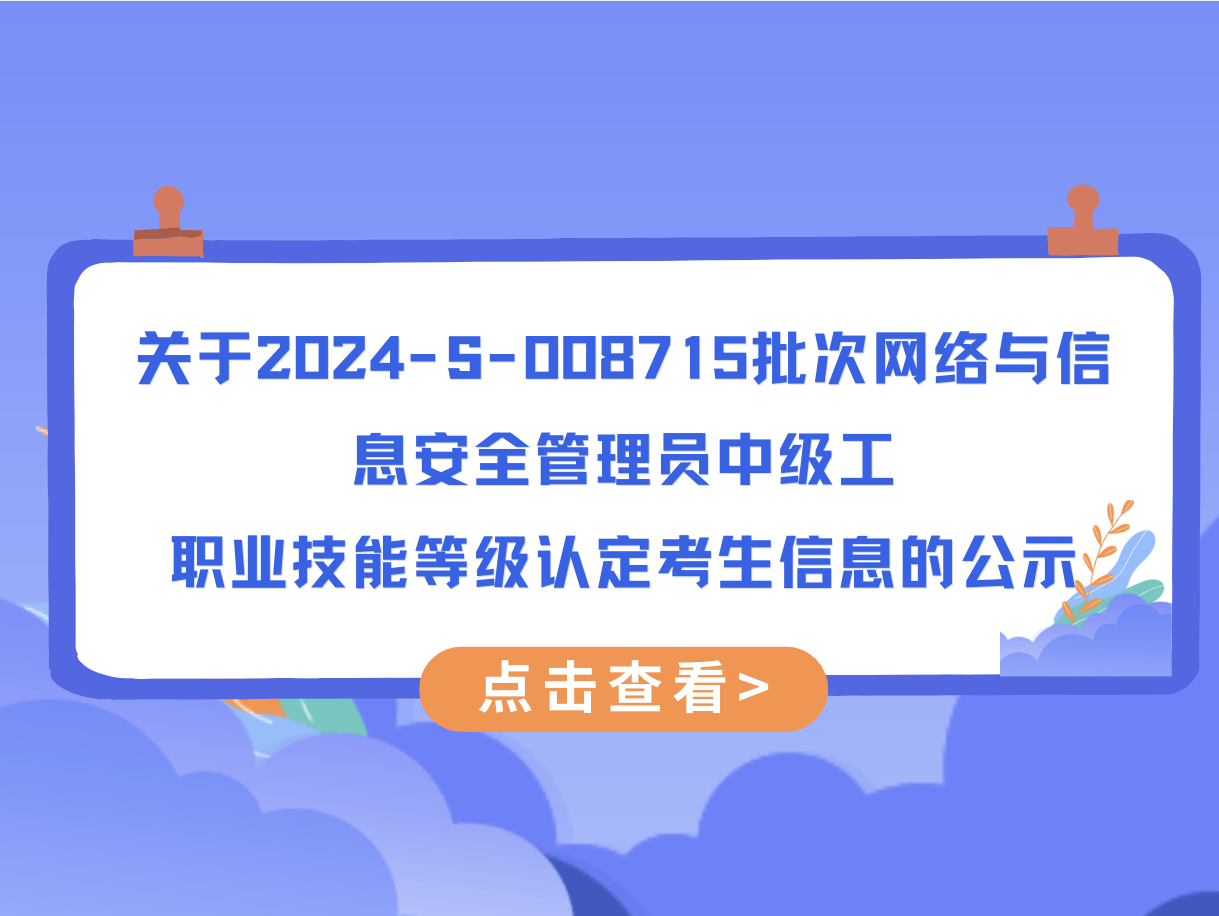 關(guān)于2024-S-008715批次網(wǎng)絡(luò)與信息安全管理員中級工職業(yè)技能等級認定考生信息的公示