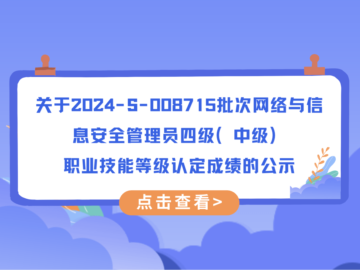 關(guān)于2024-S-008715批次網(wǎng)絡(luò)與信息安全管理員四級(中級)職業(yè)技能等級認定成績的公示