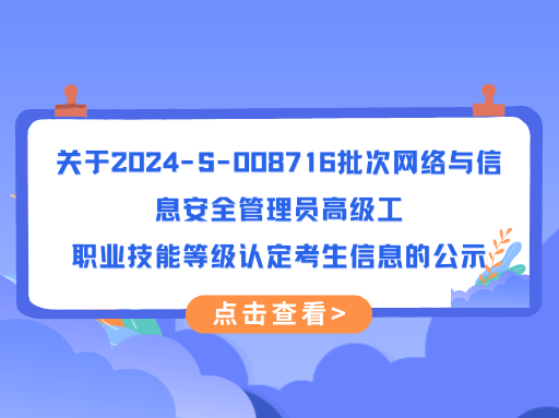 關(guān)于2024-S-008716批次網(wǎng)絡(luò)與信息安全管理員高級工職業(yè)技能等級認定考生信息的公示