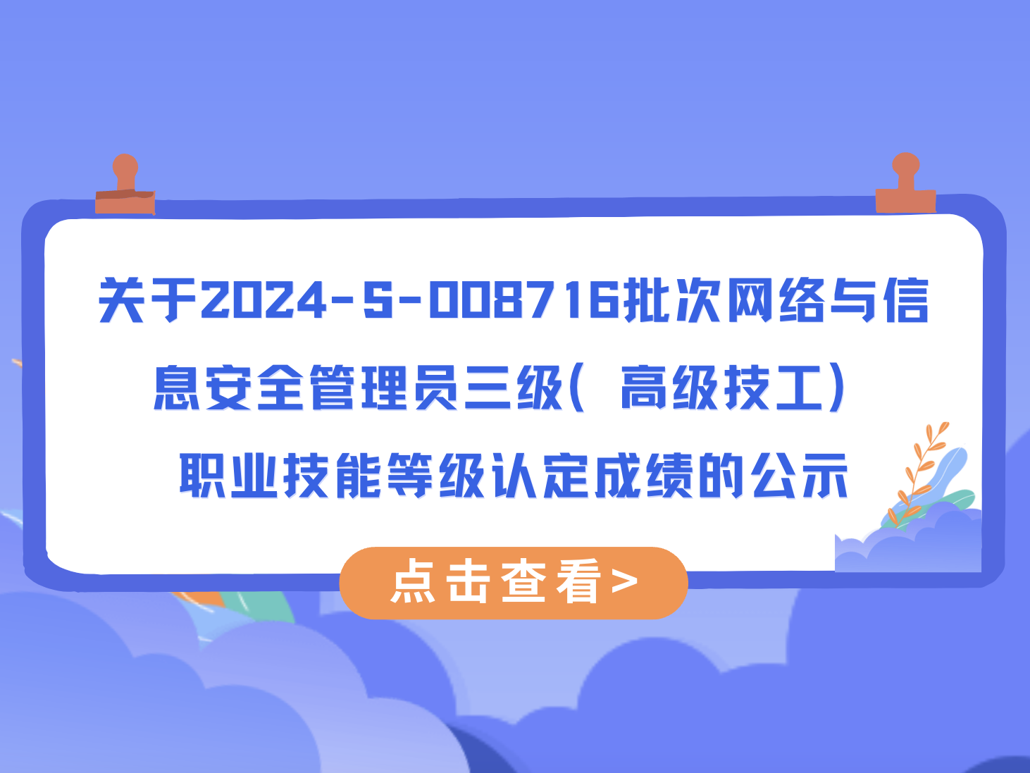 關(guān)于2024-S-008716批次網(wǎng)絡(luò)與信息安全管理員三級(高級技工) 職業(yè)技能等級認定成績的公示
