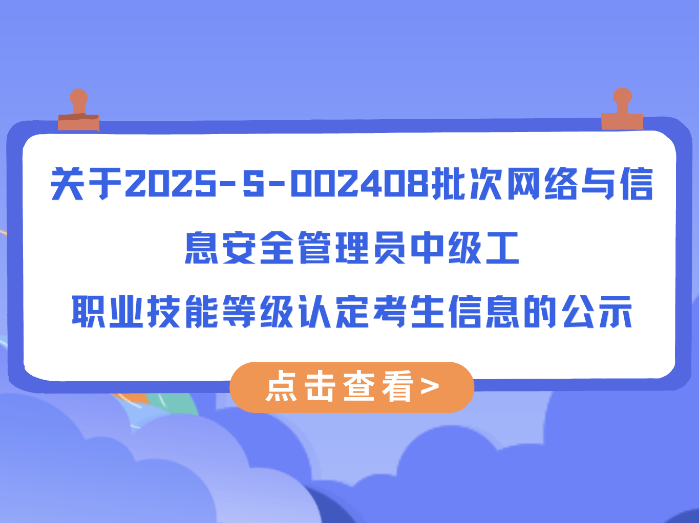 關(guān)于2025-S-002408批次網(wǎng)絡(luò)與信息安全管理員中級工職業(yè)技能等級認定考生信息的公示