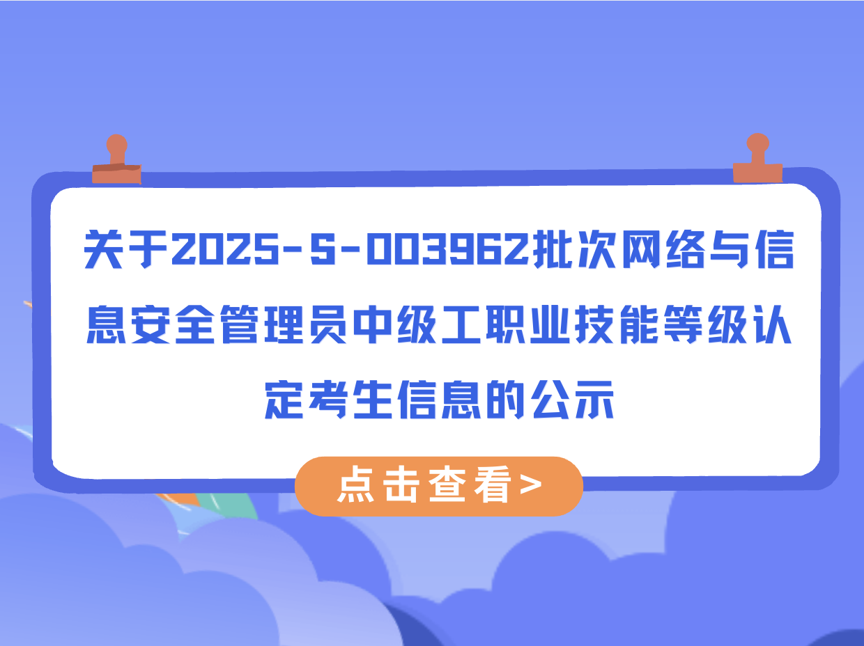 關(guān)于2025-S-003962批次網(wǎng)絡(luò)與信息安全管理員中級工職業(yè)技能等級認定考生信息的公示