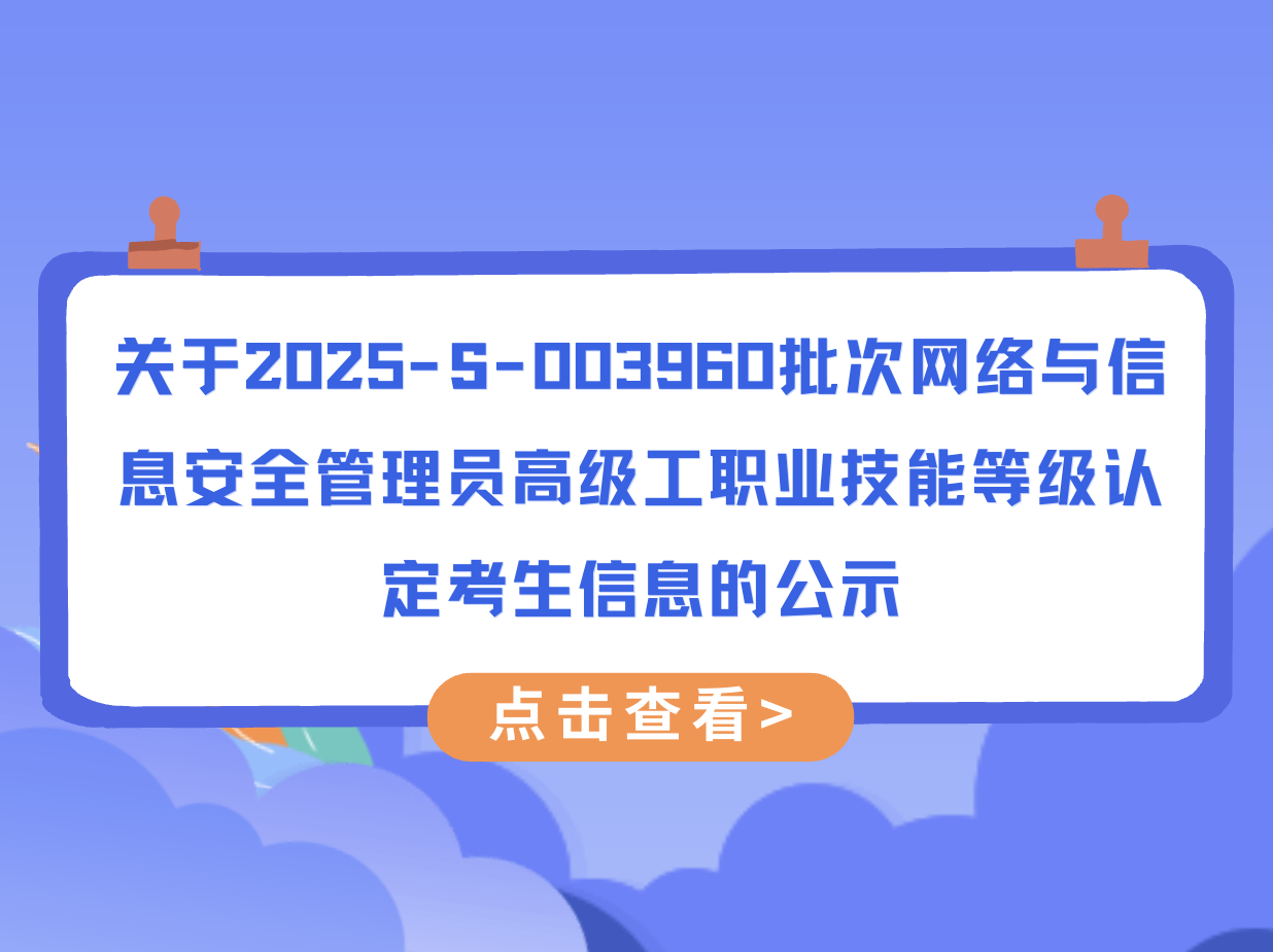 關(guān)于2025-S-003960批次網(wǎng)絡(luò)與信息安全管理員高級工職業(yè)技能等級認定考生信息的公示