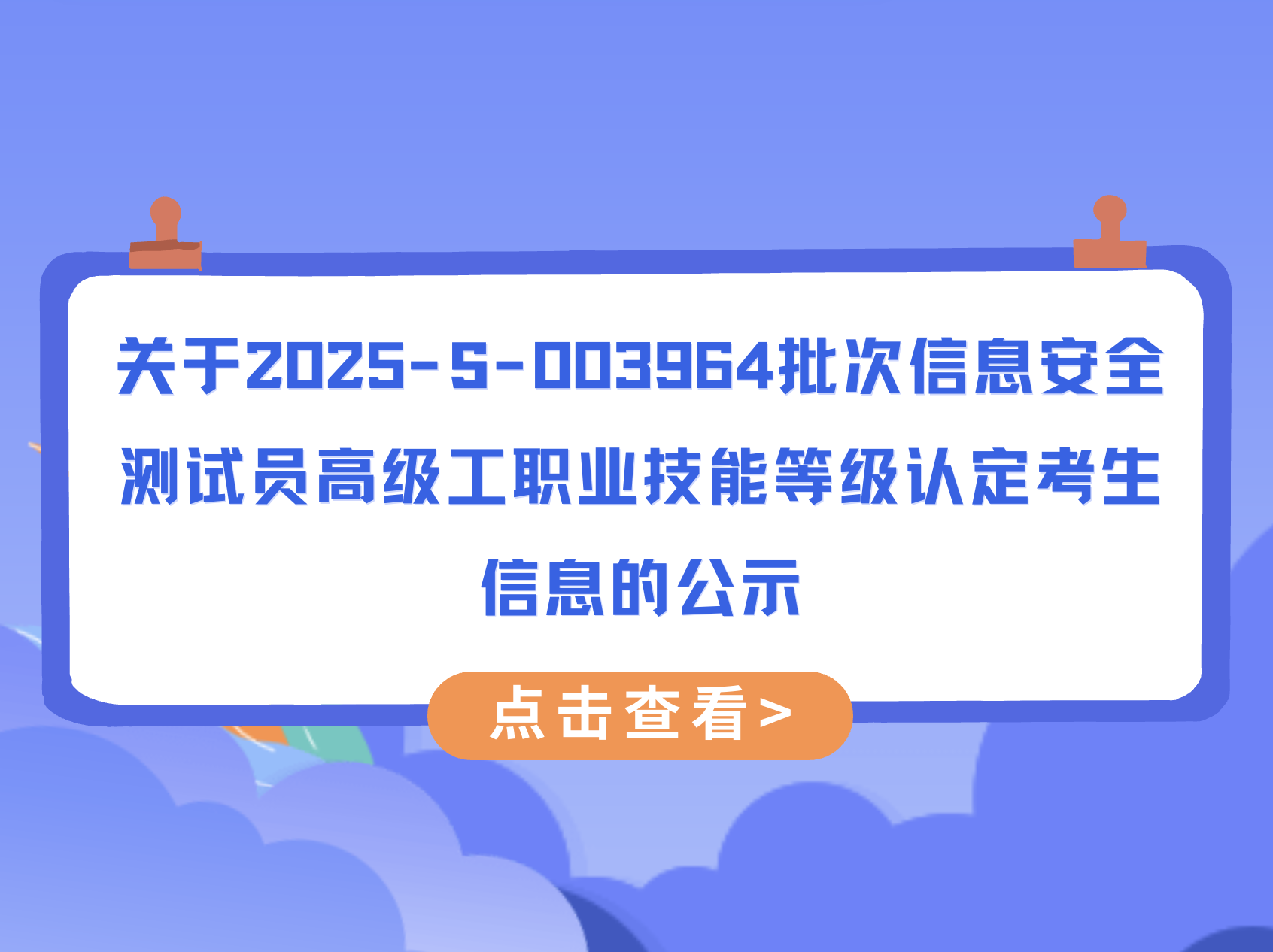 關(guān)于2025-S-003964批次信息安全測試員高級工職業(yè)技能等級認定考生信息的公示