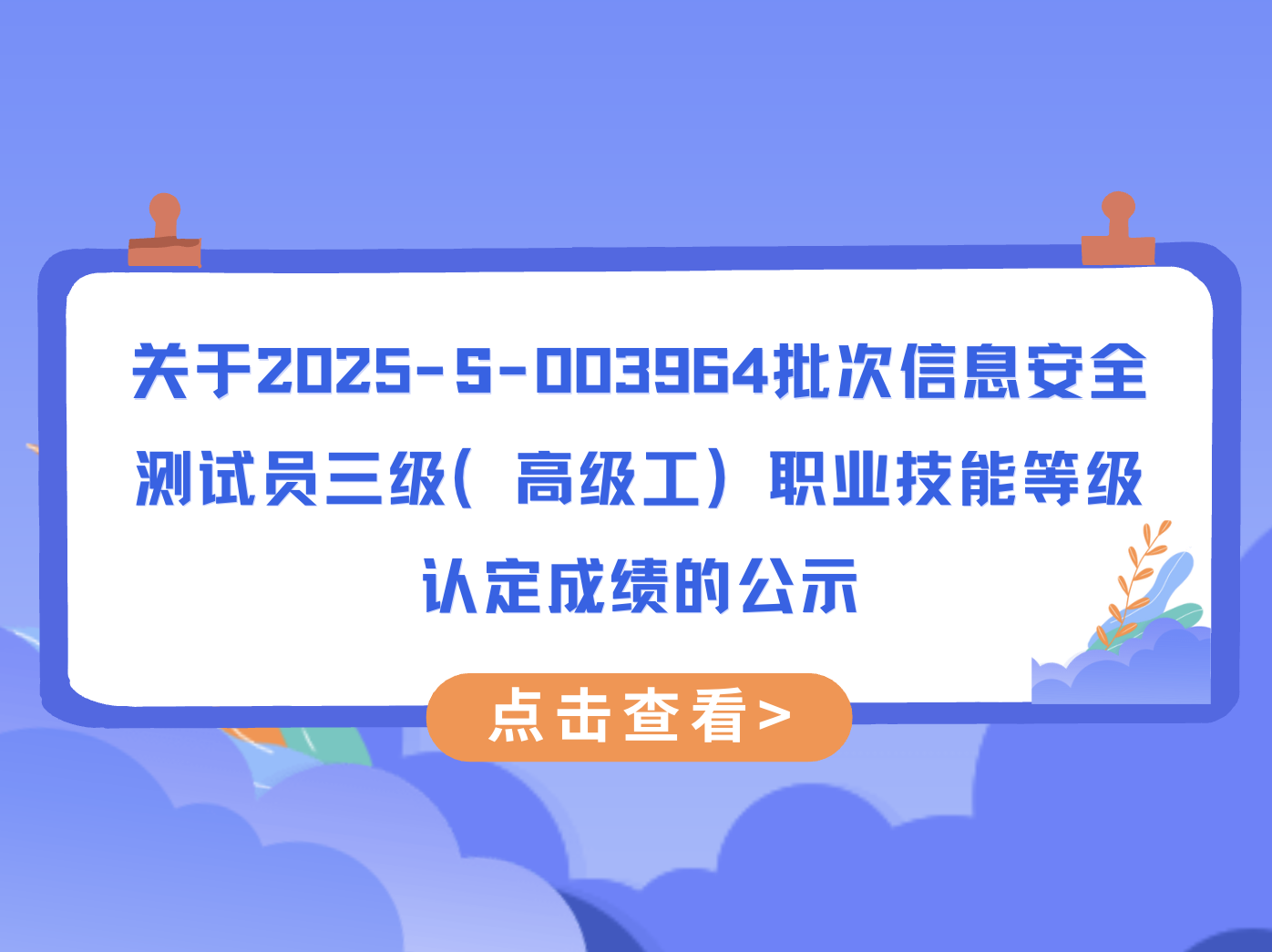 關(guān)于2025-S-003964批次信息安全測試員三級(高級工) 職業(yè)技能等級認定成績的公示
