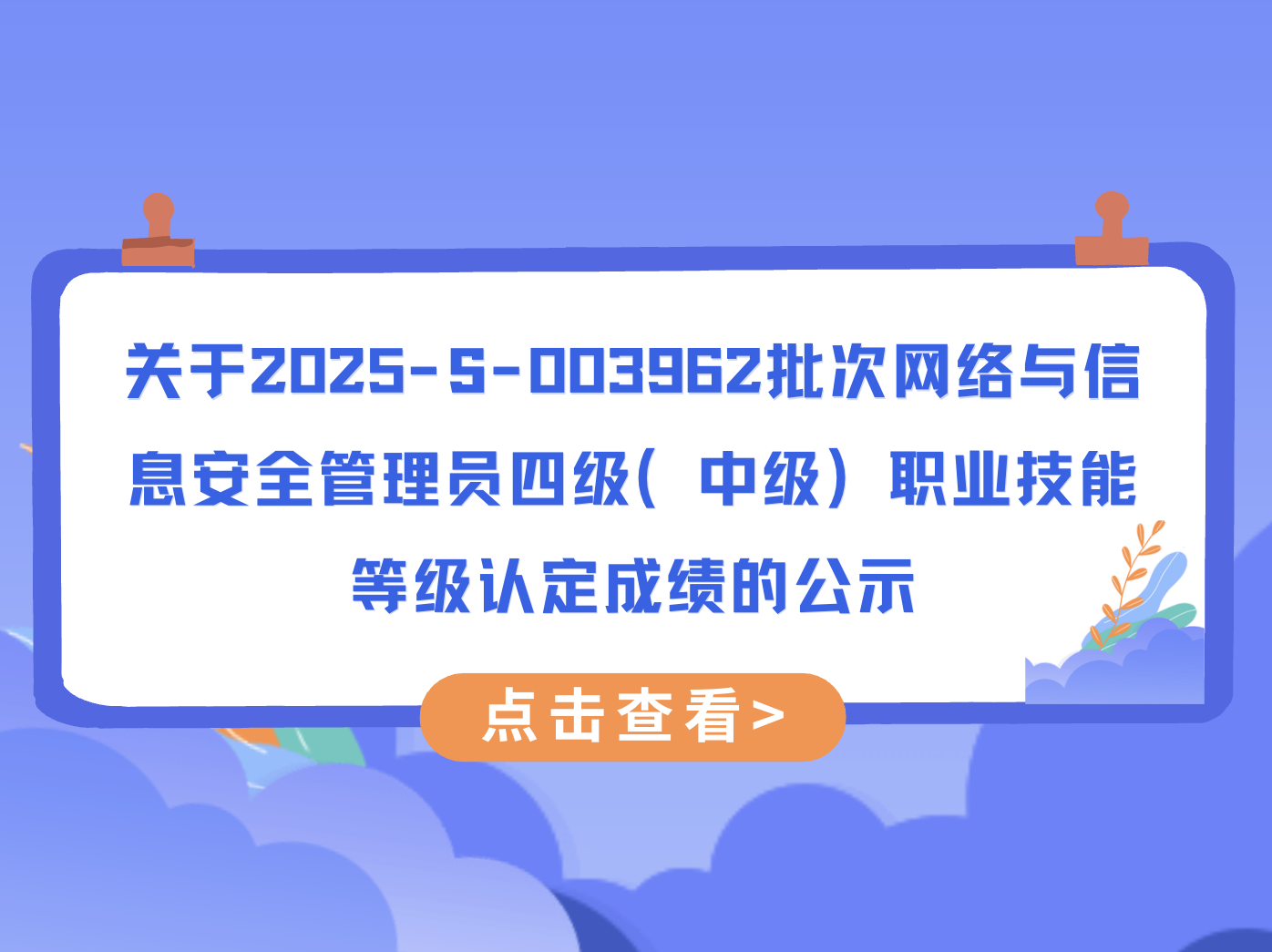 關(guān)于2025-S-003962批次網(wǎng)絡(luò)與信息安全管理員四級(中級) 職業(yè)技能等級認定成績的公示