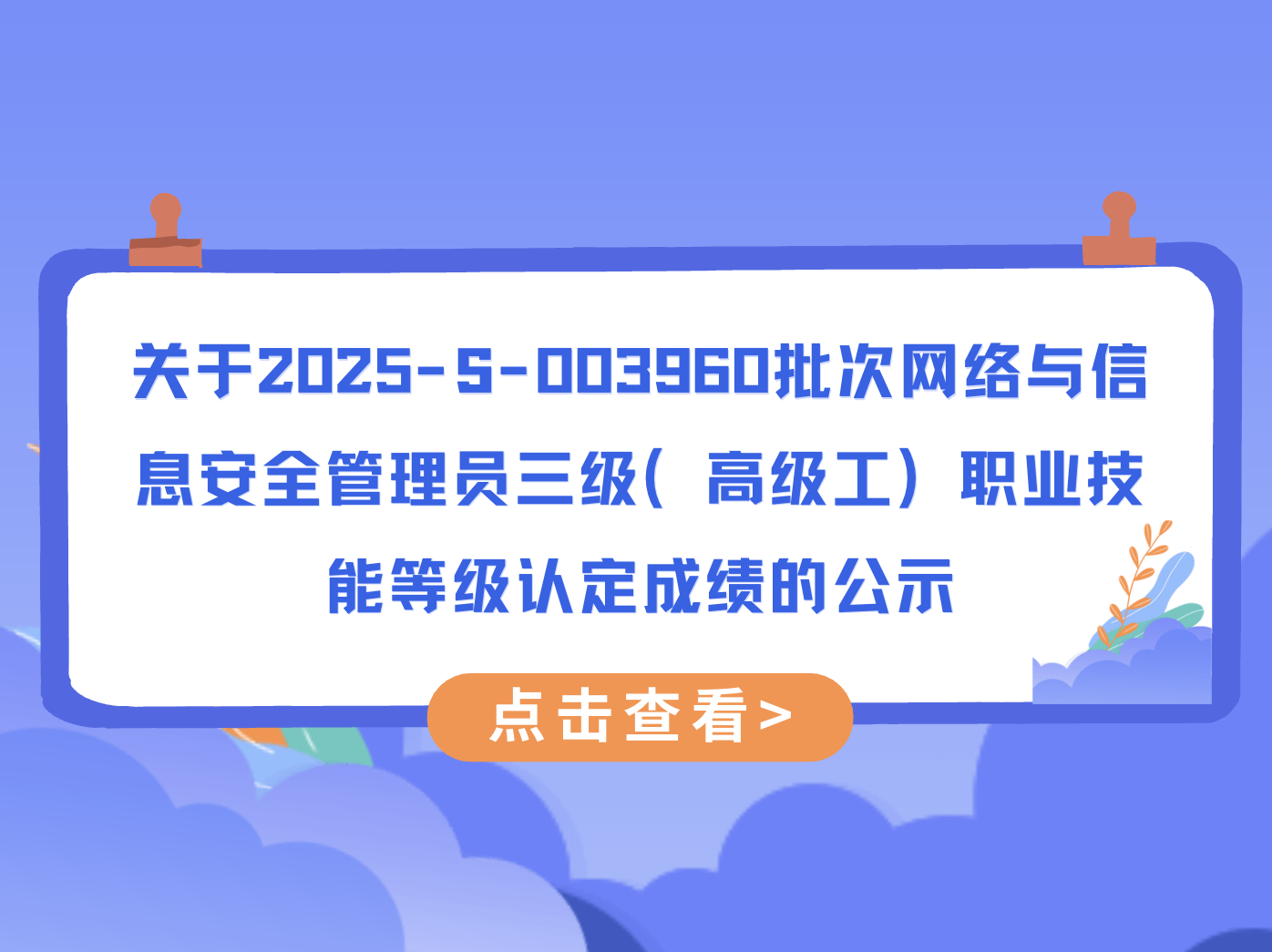 關(guān)于2025-S-003960批次網(wǎng)絡(luò)與信息安全管理員三級(高級工) 職業(yè)技能等級認定成績的公示